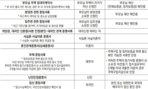 - 주민등록등본 (청년과 부모의 거주지가 다름을 증명)