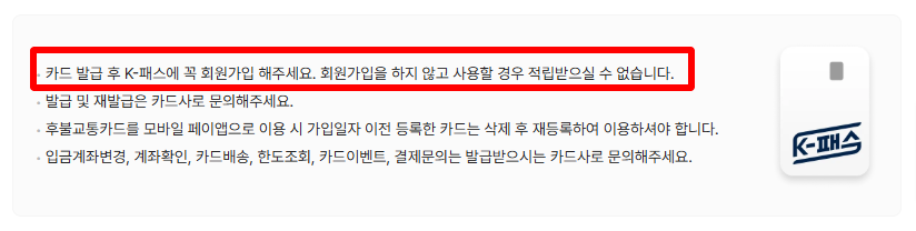💡 카드 발급 후 반드시 K-패스 회원가입을 해야 적립 가능!