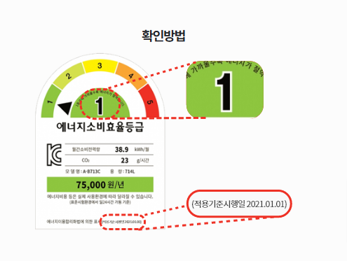 - 단, 제품에 반드시 에너지소비효율등급 라벨이 있어야 함