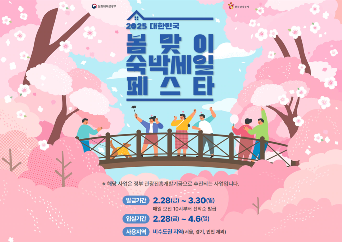 다가오는 봄, 국내 여행을 계획하고 계신다면 놓칠 수 없는 혜택!이 돌아왔습니다. 문화체육관광부와 한국관광공사가 2025 대한민국 봄맞이 숙박세일 페스타를 개최하며, 총 30만 장의 숙박 할인쿠폰을 배포합니다.