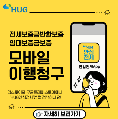 HUG 전세보증은 임차인이 보증금을 안전하게 돌려받을 수 있도록 지원하는 서비스입니다. 이제는 모바일 신청이 가능해 비대면으로도 간편하게 신청하고 안전하게 돌려받을 수 있게 되었습니다.